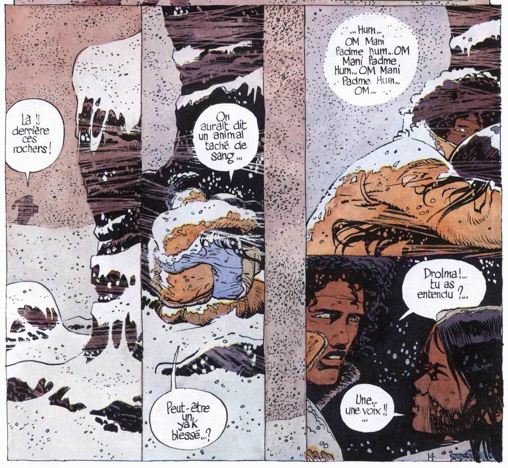 Indeed, 'Jonathan' was a quite unusual comic hero in Tintin's pages. The central character, Jonathan, can't be called a "hero" in the traditional sense, nor he is an anti-hero either. In his debut story, 'Souviens-Toi, Jonathan' (1975), he is introduced as a young Swiss traveller in the Himalaya Mountains. He goes on a journey to find a Tibetan girl he once loved, Saïcha, and adopts a feral child, Drolma, along the way. Action or adventure aren't the focus. Jonathan's thoughts and feelings receive far more attention. He is depicted as a cultivated person, who enjoys the films of Woody Allen and reads introspective literature, such as the Hindu scriptures the Vedas and the works of psychologist Carl Gustav Jung. Jonathan is even named after Richard Bach's novel 'Jonathan Livingston Seagull' (1970).