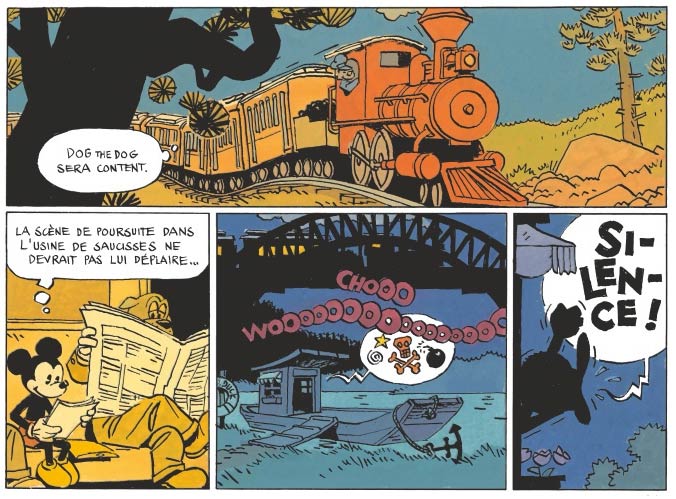 In 2016, Cosey drew 'Une Mystérieuse Mélodie, où Comment Mickey Rencontra Minnie' (Glénat, 2016), a story starring Walt Disney's Mickey Mouse. The comic book was made with official permission by the Walt Disney Company, and the publisher also invited other comic artists to make similar Mickey stories, such as Lewis Trondheim, Régis Loisel, Tébo and Nicolas Kéramidas. The graphic novel is set in Hollywood in 1927. Mickey is depicted as a scriptwriter who tries to make a living there, meeting Minnie along the way. The story is quite a break in tradition for Cosey, as it is drawn in the usual jolly Disney style, rather than his own realistic drawings. Much of the imagery is reminiscent of Floyd Gottfredson's style.