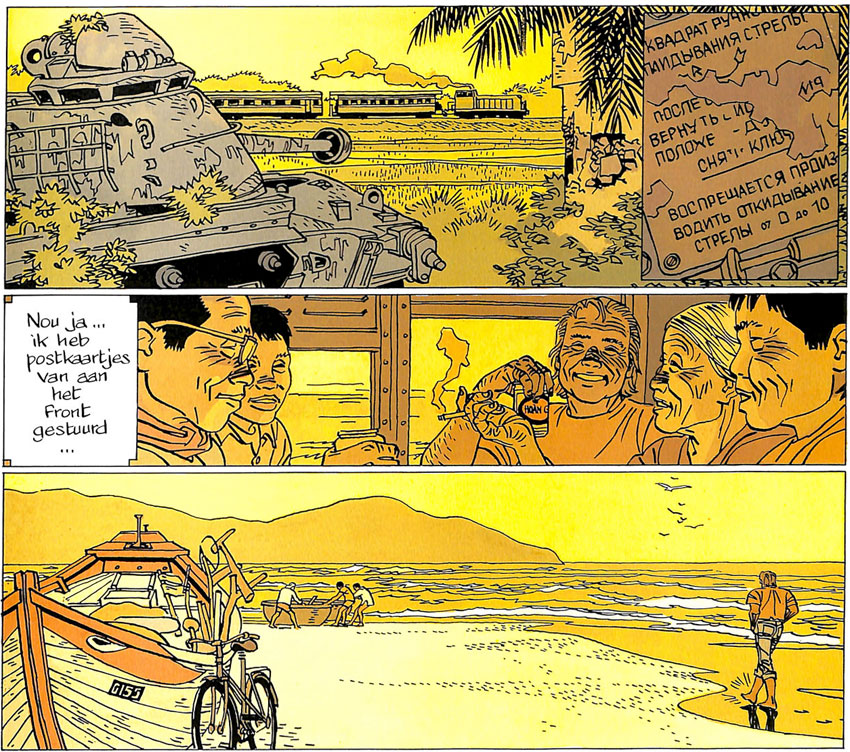 Cosey's 'Saigon-Hanoi' (1992) deals with a Vietnam veteran returning home after the war and who tries to pick up his civilian life again. To make the story Cosey spent two months in Vietnam. The comic book won the Prix Alfred for "Best Story" at the Comics Festival of Angoulême.