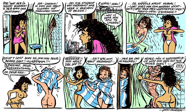 Groningen-based comic artist and animator John Croezen studied at the Minerva Academy for a while, before working as a freelancer for advertising agencies. He started drawing comic strips with a friend for student, education and other government papers. He has mainly worked in animation, including work for commercials and children's programs, as well as picture book animation. He has worked with comedian Herman Finkers on the animated films 'Kroamschudd'n in Mariaparochie' and 'MacBeth'.