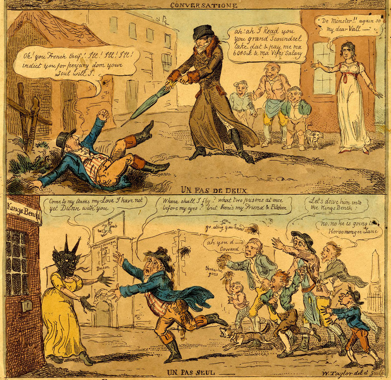 Two panels from 'The Ruler Ruled, Overruled & Routed - O'Opera Operarum', 1813.