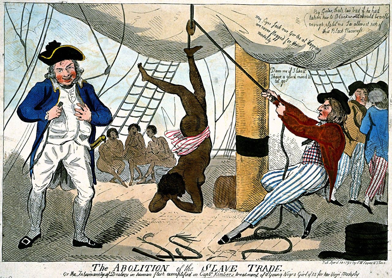 One of Cruikshank's most important works was 'The Abolition of the Slave Trade' (1792). The cartoon depicted British sea captain John Kimber who, on 22 September 1791, had demanded that a 15-year old African slave girl would dance for him. When she refused, the girl was given several lashes and tied with her leg to a rope. Sailors then suspended her several times in the air, only to suddenly drop the rope so she would smack against the deck. On 27 September, she died from her wounds. The incident was reported to abolitionist William Wilberforce, who led the case against Kimber, who was arrested on 8 April 1792 and put on trial in June. Although he was acquitted, the scandal received a lot of attention and Cruikshank's cartoon actually helped turn public opinion against the slave trade. In 1833, slavery would be abolished in most of the British Empire.