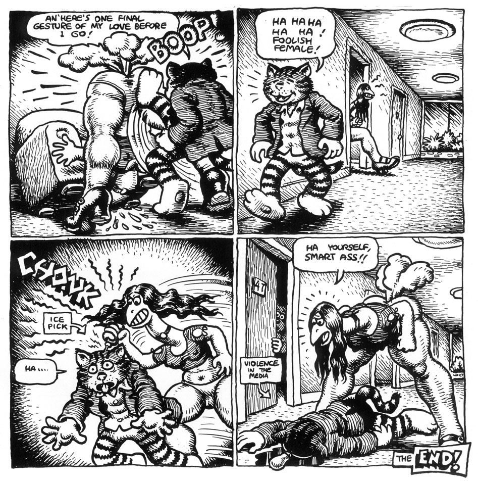 The end of Fritz the Cat, following Robert Crumb's dissatisfaction with the Ralph Bakshi movie adaptation, from 'Fritz the Cat Superstar' (People's Comics, September 1972).