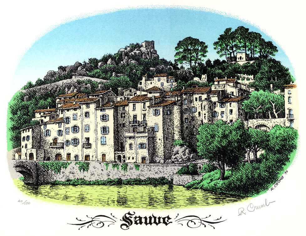 1996 drawing by Robert Crumb of his French hometown Sauve.