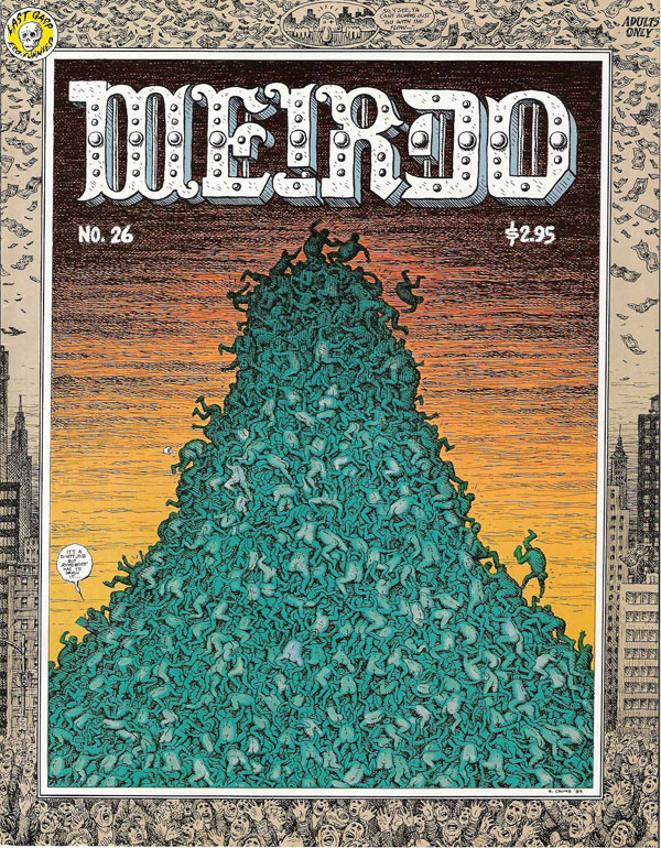 In 1980, Art Spiegelman and Françoise Mouly launched their classy comic anthology RAW, which became a haven for alternative cartoonists from all over the globe. Although Crumb and his wife Aline Kominsky also published in its pages, he felt it was "too arty farty". He wanted a comic magazine that was more down to earth, bringing the medium back to its pulp roots. Between March 1981 and the summer of 1993, Crumb released a new alternative comic magazine, Weirdo. It was mostly a vehicle for his own comics, but also offered room for his wife Aline and marked the print debut of Crumb's daughter Sophie and his brother Maxon. Apart from relatives, the magazine also featured work by established underground and alternative cartoonists, as well as new talent, like Peter Bagge, who also served as chief editor from the 10th to the 17th issue. Afterwards, Aline Kominsky took over until the final issue.