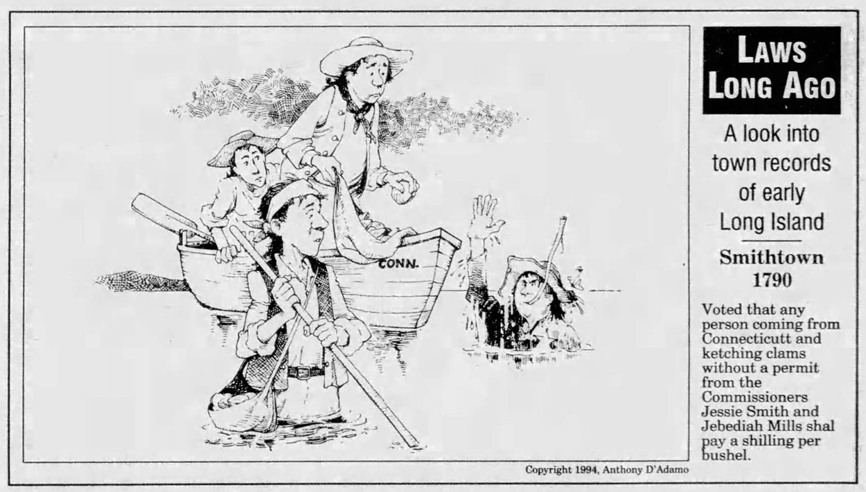Between 1979 and 1995, D'Adamo was a staff illustrator for the New York newspaper Newsday, primarily serving the Nassau and Suffolk counties on Long Island. He also contributed his cartoon column 'Laws Long Ago' (1994-1995) to the paper, which came about by accident. When working on another project, D'Adamo came across the quaint spelling and arcane language used in local ordinances on Long Island, and began collecting these obscure but amusing bits of history. Through his passion for history and literature, he turned them into an illustrated column, in which he highlighted either the comical aspects of the situations themselves or the strange long-forgotten laws that were in effect on Long Island during the early history of the United States. They were compiled in the book 'Long Island, Our Story' (Newsday Inc, 1998). For his work for the paper, he was awarded Newday's first "Publishers Award in Graphic Arts".