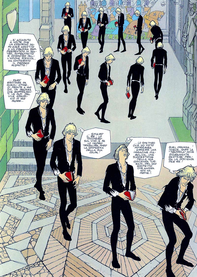 Other notable work by De Luca is the Shakespearean cycle he made with Raul Traverso from 1975 to 1978. This includes faithful adaptations of plays like 'The Tempest', 'Hamlet' and 'Romeo & Julia'. In the 1980s, he made 'Il Giornalino di Gian Burrasca' with Claudio Nizzi, based on the novel of the same name by Vamba, and an adaptation of the Paulo Ferrarini novel 'La Freccia Nera' (1988).