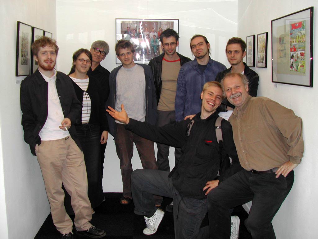 In 2003, students of the Sint-Lukas in Brussels exhibited their work in Gallery Lambiek, on the occasion of the 5th anniversary of the school's Comics section. The event was organized by the teachers Johan de Moor (third from the left) and Nix.