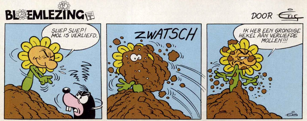 'Bloemlezing' (Suske en Wiske Weekblad #50, 1994). Translation: "Nah-nah-na-nah-na, Mole is in love. I really hate moles that are in love!!!".