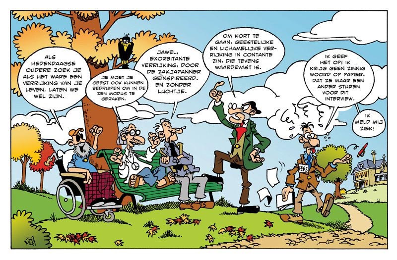 Patrick Vandebergh was born in 1972 in Heerlen, in the Dutch southern province of Limburg. Since 2009, Debergh has made comic strips and cartoons for commercial clients, including the waste organization AREA Reiniging ('Bartje Bak'), the Amsterdam Rozentheater and for Stichting Weerklank, a foundation for people with special sensory experiences, such as hearing voices or seeing images. In addition, he has published his own comics on the online comics portal Stripster and his own social media channels. These have included the cartoon series 'Gekke Henkie' and 'De Stripfreak', as well as a celebrity comic strip based on Rotterdam poet Jules Deelder (who also wrote comics for Rob Peters), called 'Juul Deeldert'. His adventure comic 'Sikje - Olie voor Irak' (2007-2008) was first serialized in Nicky Saxx Magazine by André Wijntjes' publishing imprint Kippenvel, and in 2010 released in book format in the Nooitgedacht collection. Debergh, who mostly signs with simply "Vick", has additionally self-published an album about a gang of loitering seniors, called 'De Vandalen' (2011). Since 2016, Debergh's "cartoon column" about comic fandom, 'De Stripfreak', has been running in Stripglossy magazine of the publishing house Personalia.
