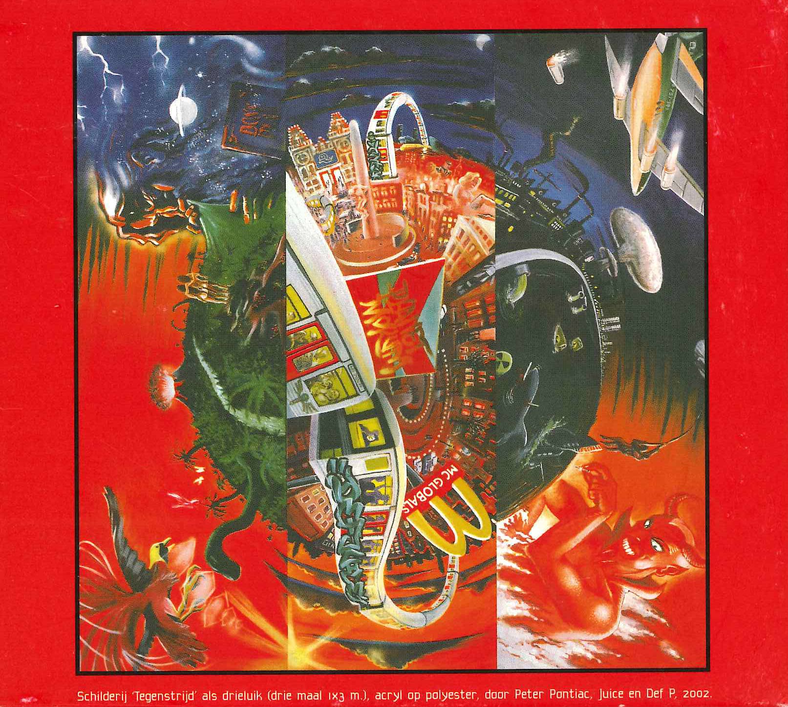 In the 2000s, Def P. collaborated with graffiti artist Juice and underground cartoonist Peter Pontiac. Together they made five tryptichs based around the theme 'Planets'. One of these, 'Planet Mokum', was used inside the gatefold sleeve of the Osdorp Posse album 'Tegenstrijd' (2003).
