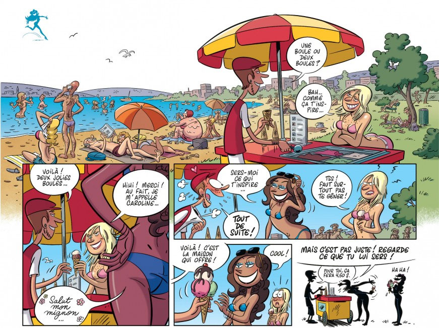 'Le Guide Junior Pour Bien Élever les Parents' by Jacky Goupil and Sylvia Douyé for the Collection Humour of the publishing house Vents d'Ouest in 2005. He has been working extensively with his partner Maryse Dubuc, starting with the creation of the character 'Smoofee' in Bédélirium in 1995. Their best known creation is however 'Les Nombrils', a popular gag series about three teenage girls, from 2004. After publication in the Quebec magazine Safarir, the strip is featured in the Belgian Spirou magazine and published in book format by Dupuis. The series is also published in the English language as 'The Bellybuttons' by Cinebook.