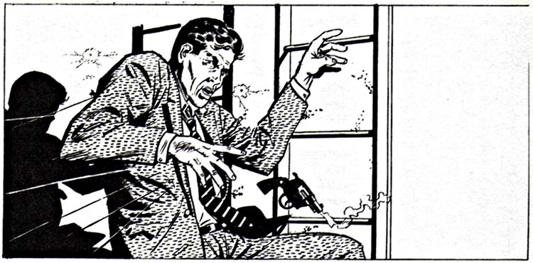 José Delbo's main Argentinian client of the 1960s was the publishing house Editorial Yago. Starting in 1962, he drew a great many detective and sci-fi features for the magazines Misterix and Rayo Rojo, including 'Meridiano K', 'Tony Mackett', 'John Speed, Investigador Especial', 'Más Allá de lo Humano' and 'Capitán Martin'. He also succeeded Carlos Cruz on the 'Santos Palma' feature. In addition, José Delbo contributed to magazines like Intervalo by Editorial Columba, and one story to Patoruzú by Editorial Dante Quinterno: 'La Cueva Del Yacaré'.