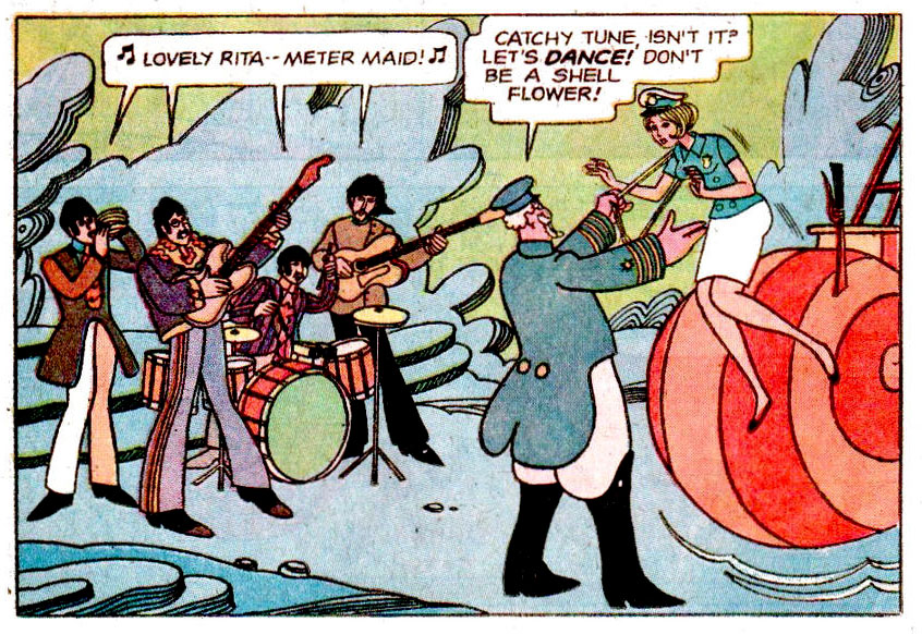 José Delbo's best remembered Gold Key work was however a comic book adaptation of a movie. In December 1968, George Dunning released 'The Yellow Submarine', an animated film based on songs by The Beatles. It starred the band as main characters, although voiced by actors. To tie in with the release, Gold Key issued a 'Yellow Submarine' comic book, adapted by Paul S. Newman and drawn by José Delbo. However, the comic book was no straightforward adaptation. Gold Key obtained an early draft of the movie script, which Paul S. Newman streamlined into a comic script. Delbo was commissioned to draw an entire story based on a film he hadn't even seen. The artist modeled his artwork after the original movie designs by Heinz Edelmann. The Gold Key comic book was ready by the time 'Yellow Submarine' was released to theaters, but featured many scenes that weren't in the final movie. This makes the 'Yellow Submarine' comic book a bit strange for readers familiar with the film, but at the same time interesting as a showcase what other direction the movie could have taken. Half a century later, Bill Morrison made another comic book based on 'Yellow Submarine', this time published by Titan Comics.