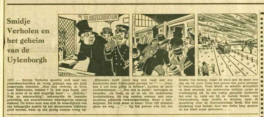 The success of 'Smidje Verholen' led to 18 more stories. Studio Avan also attracted other artists, such as Frits Kloezeman, Raymond Bär van Hemmersweil, Jan van Haasteren, Jan van Reek and Willy van Giffen. In 1953, the studio began a new newspaper comic, called 'Brigadier Piet' (although it was printed in some papers as 'Karel Kleuntje'). Loek van Delden was affiliated with an advertising agency between 1960 and 1964. Several 'Smidje Verholen' stories were reprinted in the Frisian language in 1985. Studio Avan, set up in Van Delden's home in The Hague, was discontinued in 1992. Van Delden moved to a nursing home during the following year, and passed away in December 2004.