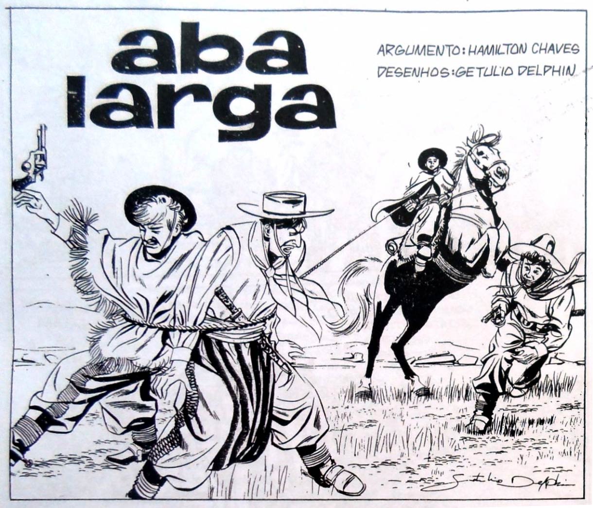 Between 1962 and 1964, Delphim was part of the CETPA, a union of comic artists aimed at the nationalization of comics in Brazil. The chairman was Zé Geraldo, and the other associated authors were Flávio Colin, Renato Canini, Júlio Shimamoto and Luiz Saidenberg, while the project was endorsed by Leonel Brizola, the left-wing governor of Rio Grande do Sul. Through CETPA, Delphim created the comic book 'Aba Larga', about the Mounted Police Brigade of Rio Grande do Sul. The series was an attempt to promote regional Brazilian police forces. Ironically enough, the comic book borrowed heavily from the US comic 'King of the Royal Mounted'. The character later appeared in a newspaper comic strip by João Mottini in 1963-1964.