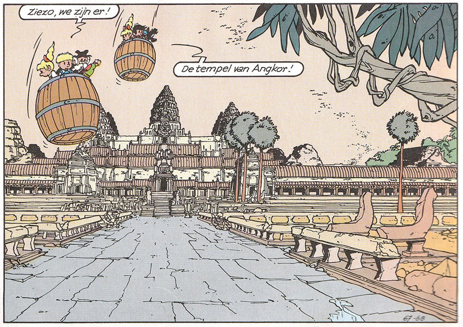Backgrounds by Philippe Delzenne for Jommeke #123, 'De Schat van Angkor' (1984).