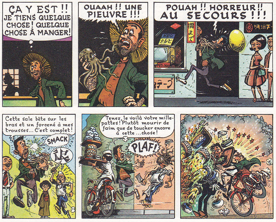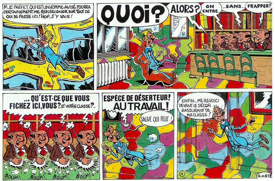 A later episode of 'M. Rectitude et Génial Olivier' in a psychedelic setting (Spirou #2574, 1987).