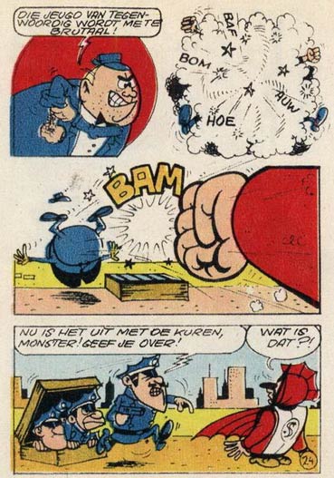 'Schwartzbrot' and 'SuperHerman', Dutch-language version, respectively from Spirou/ Robbedoes issues #1280 (25 October 1962) and #1357 (16 April 1964).