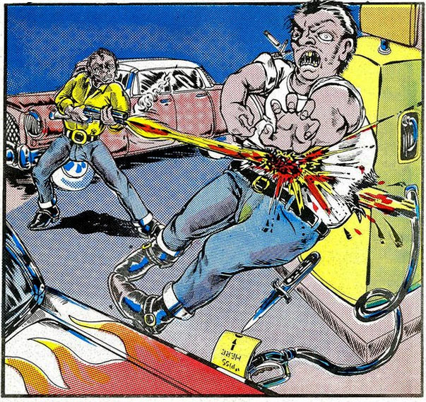 George DiCaprio was one of the leading figures in the West Coast underground comix scene of the 1970s and early 1980s. He was writer, editor and distributor, and his stories have appeared in publications like Forbidden Planet, Slow Death and Cocaine Comix. DiCaprio made two issues of 'Greaser Comics', the first with adult pulp writer Richard Jaccoma, the second with artist Jim Janes. With Pete Von Sholly, he wrote 'Neurocomics' for Last Gasp, based on the writing of Timothy Leary.