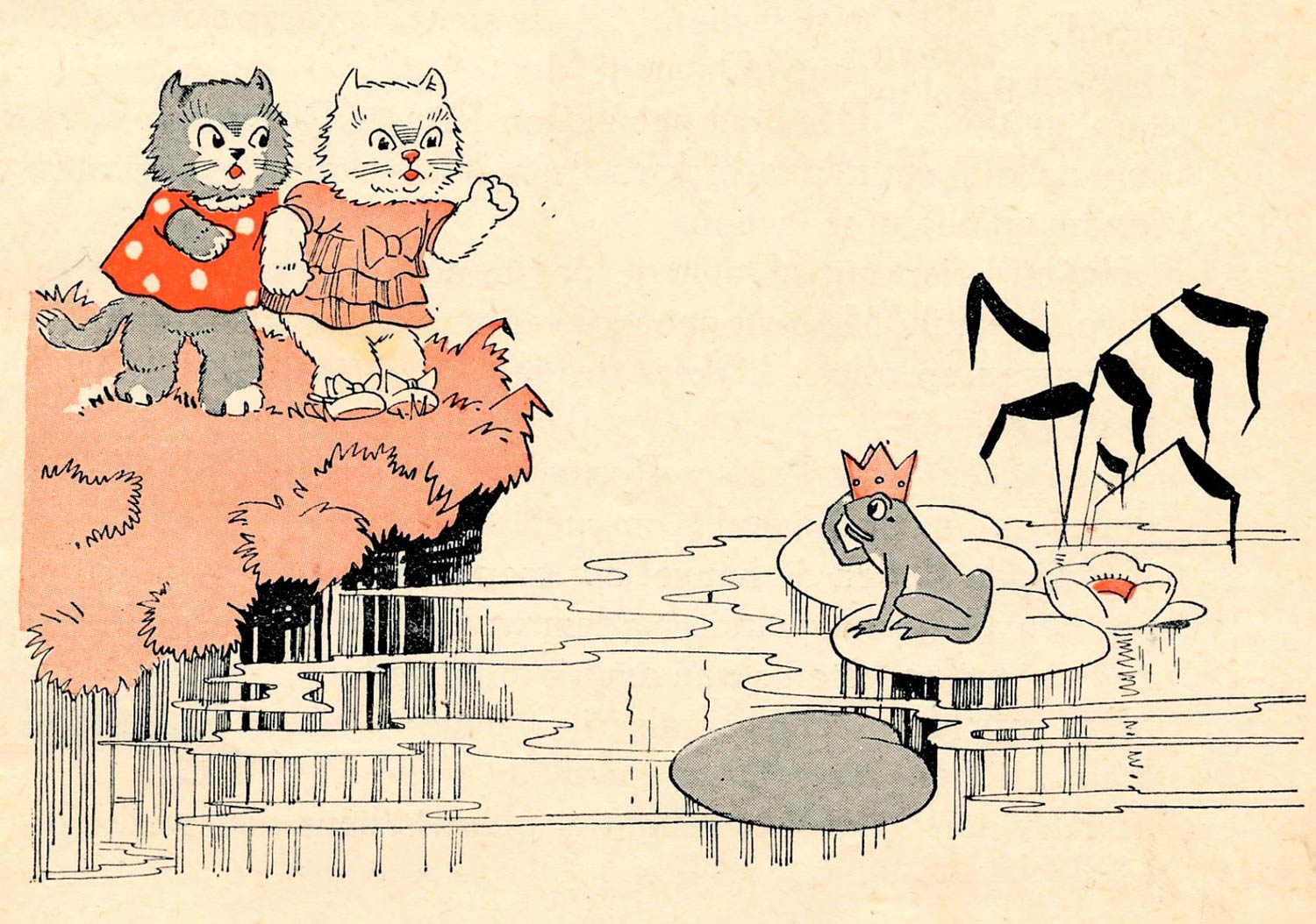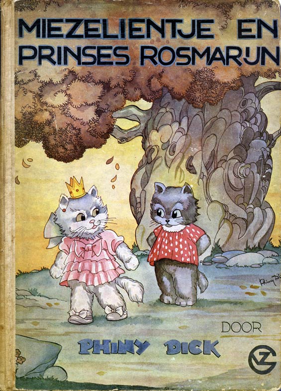 In 1938, Marten Toonder created the character of Tom Poes, a white cat named after the Dutch "tom pouce" pastry. It took until 1941 before the character debuted in its own newspaper strip in De Telegraaf. Besides suggesting the name, Phiny Dick also wrote the captions for the first six episodes of Tom's debut story, 'Het Geheim der Blauwe Aarde' (1941), but she eventually decided that the character didn't suit her that much. By that point, she felt more at ease with her own creation, the Angora cat Miezelientje, whose adventures were set in a happy and carefree forest, called Poesenoord. In 1938 and 1939, Miezelientje's first adventures appeared as text comics in the Rotogravure magazine Onze Club-Krant. Afterwards, she created three books with the character for publisher G.B. van Goor Zonen: 'Miezelientje en de Prinses Roosmarijn' (1939), 'Miezelientje en Kakeline de Kip' (1941) and 'Miezelientje en Wol de Beer' (1948). At the suggestion of her publisher, Phiny Dik signed her work as "Phiny Dick", to make her name look more artistic.
