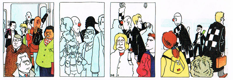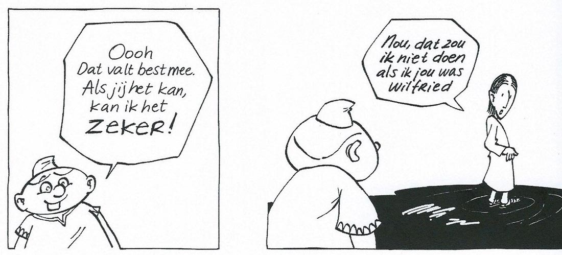 As a youngster, Dieperink already had a fascination for the humor of the Dutch singer/performer Herman van Veen. Van Veen often performed as a clown in a checkered black-and-white jacket, which inspired Dieperink to do a celebrity comic about this persona. Luckily, Van Veen was interested too, and in November 2001, the 'Hermanus' character was first presented to the public in Van Veen's humor booklet 'Grappen en Grimassen'. About 800 'Hermanus' strips were published in Het Utrechts Nieuwsblad and other regional papers of the Wegener publishing group. The playful and surreal gags starring the Dutch comedian with a clown's nose and aforementioned jacket were first collected in a landscape format-shaped booklet by Stripstift, with both a Dutch and a German edition in 2007. The publishing house Strip2000 released four new collections in 2015-2016. Dieperink has additionally cooperated with animator Martin Jan van Santen on three animated pilots with Van Veen's clown persona.