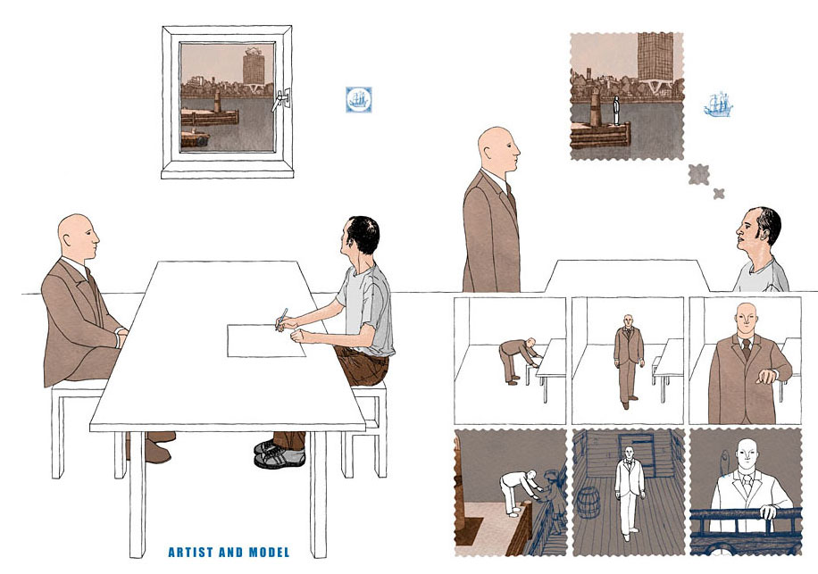 Stefan J.H. van Dinther is an Amsterdam-based artist and programmer, best known in the field of comics for his joint projects with Tobias Schalken. With their self-published debut 'Eiland' (1997), they instantly made their name. Where the lot of their colleagues made their debut in existing magazines like Incognito and Zone 5300, Van Dinther and Schalken - then still joined by Eric van der Heijden - chose to immediately present their very own publication. It was clear from the start that they preferred to go their own way.