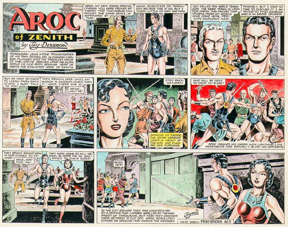 During the 1990s, Disbrow developed a weekly science fiction strip called 'Aroc of Zenith', which he hoped to get syndicated to newspapers. In a 4 May 1997 article with the Asbury Park Press, it was mentioned that he had already finished 92 installments for this "classic science fiction with dashing heroes, cunning villains, massive spaceships and stunning sets right out of Flash Gordon, Buck Rogers and Star Wars". As no syndicate picked up the feature, Disbrown in his early 70s, ventured into the brand new world of webcomics. Between January 2000 and December 2005, his 'Aroc of Zenith' was serialized online in 312 weekly episodes.