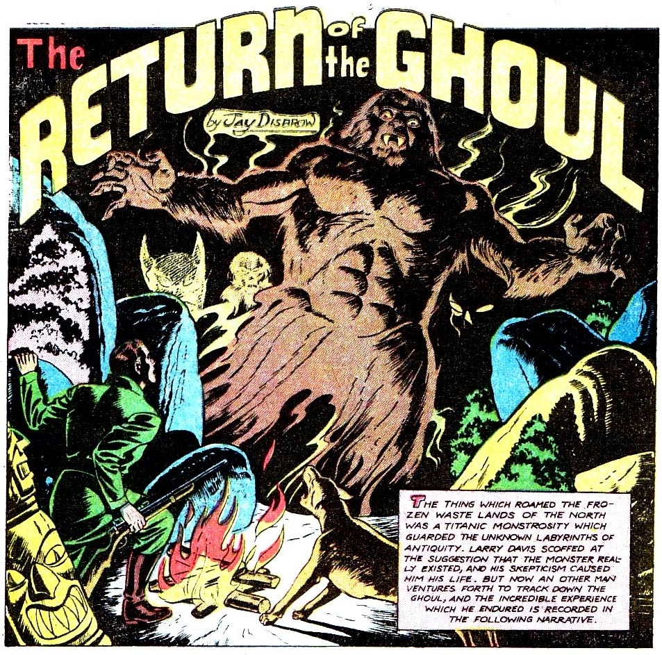 Jay Disbrow was the main artist of horror and monster stories for 'Blue Bolt Weird Tales of Terror', and additionally contributed to the company's other horror titles 'Spook' and 'Ghostly Weird Stories', as well as the parody comic book 'Unsane'. He also contributed to Star's romance titles like 'True-to-Life Romances', 'Popular Teen-Agers' and 'Confessions of Love', and additionally continued to work on jungle heroes, drawing the adventures of Nigah, Taranga and Torga for 'Terrors of the Jungle'. In 1954, Disbrow produced the 'Picturescope Jungle Adventures' book for Star Publications, a black-and-white coloring book and comic starring 'Jahka, Lord of the Jungle', with one large panel on each page simulating a 3-D effect. Following the witch hunt and media scare against horror comics and comic books in general, and the subsequent establishment of the highly restrictive Comics Code, many comic book publishers went out of business, as did Star Publications. The final titles appeared in 1954.
