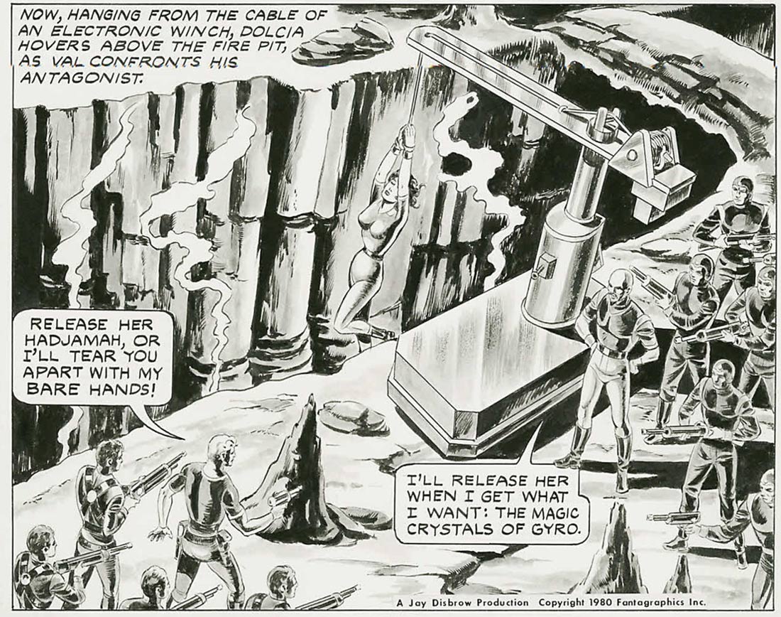 In the late 1970s and first half of the 1980s, Disbrow returned to making comics for independent publishers. In 1979, Disbrow created the Flash Gordon-like space hero Valgar Gunnar of Gyro for the title 'The Flames of Gyro', which was the first comic book published by Fantagraphics. He made three issues of the space comic book 'Lance Carrigan of the Galactic Legion' for Quest Publications (1984), followed by stories for 'Seduction of the Innocent' by Eclipse Enterprises (1985). In 1985, he also wrote 'The Iger Comics Kingdom' for Blackthorne Publishing, in which he told the story of the Iger Studios during the "Golden Age of Comics." The June 2013 issue of Alter Ego magazine (#117) also featured a Jay Disbrow article about his former publisher L.B. Cole.