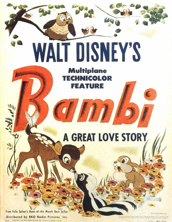 Film posters for 'Pinocchio' and 'Bambi' (© Disney).