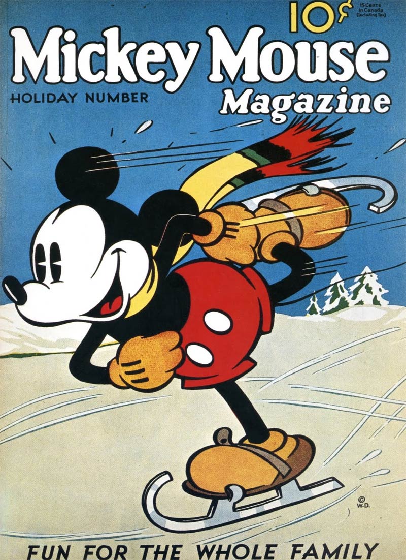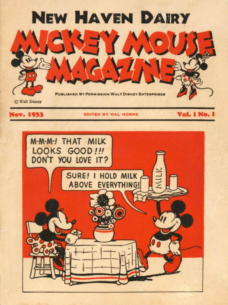 Mickey Mouse Magazine issues of November 1933 and December 1935. The early issues were promotional magazines for dairy companies (© Disney).