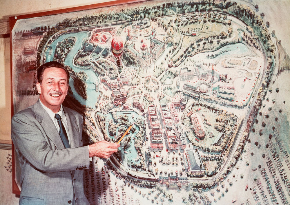 Walt Disney presenting the map of Disneyland.