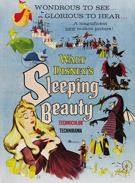 Movie posters for 'Sleeping Beauty' and 'One Hundred and One Dalmatians' (© Disney).