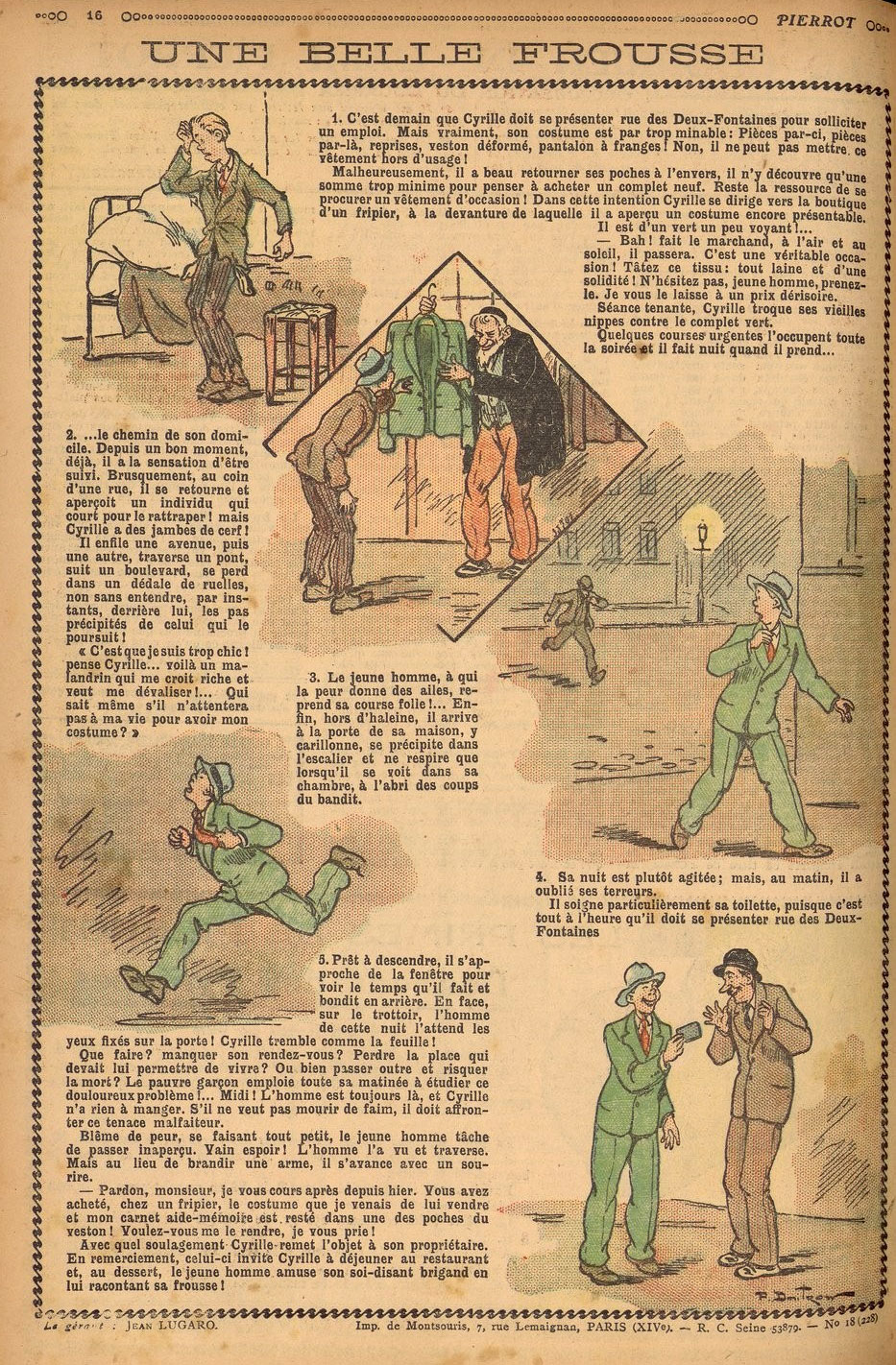 'Une Belle Frousse', illustrated by Pierre Disbrow and published in Pierrot magazine (1930).