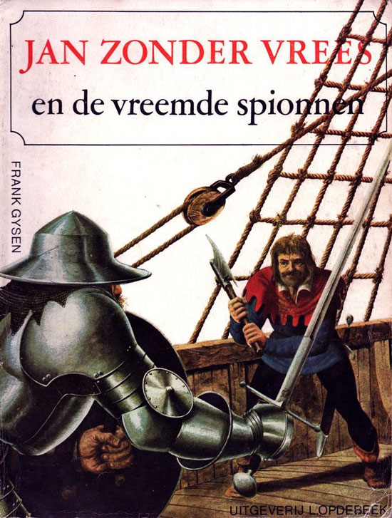 Already a cover illustrator for the novels, Dolphyn also worked on a comic series about 'Jan Zonder Vrees' ("John the Fearless"), a character from Flemish folklore, popularized by the 1910 children's book written by Constant de Kinder. The stories are set in 15th-century Flanders, where Jan is depicted as a fearless strongman, who happens to have the same nickname as the historical Bourgondian duke John I. Prior to Willem Dolphyn, other comic adaptations of 'Jan Zonder Vrees' were made: one by Jan Waterschoot (1940s) and Roderyck (early 1960s). For his 1970s take on 'Jan Zonder Vrees', Dolphyn worked in a steady collaboration with Jo Lagrillière - better known as editorial cartoonist Joke - who did the inking and background art. The two men were credited with playful anagrams of their names, W. Dollière and J. Lagryphin.