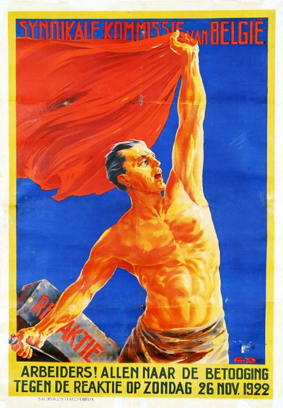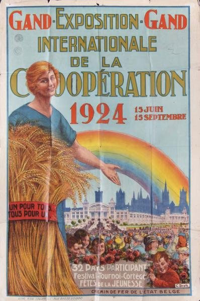 Artwork for the Belgian worker's movement. The first poster promotes the International Exhibition of Cooperation, held between 15 June and 15 September. The second one rallies for a demonstration, set for 26 November 1922.