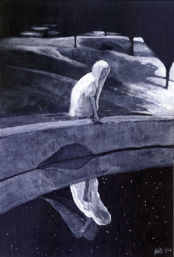 It shall be no surprise that the narratives in Guido van Driel's graphic novels reveal strong cinematographic influences. And as he generally paints his comic panels with acrylics on black paper, the author has combined three art forms in one.
