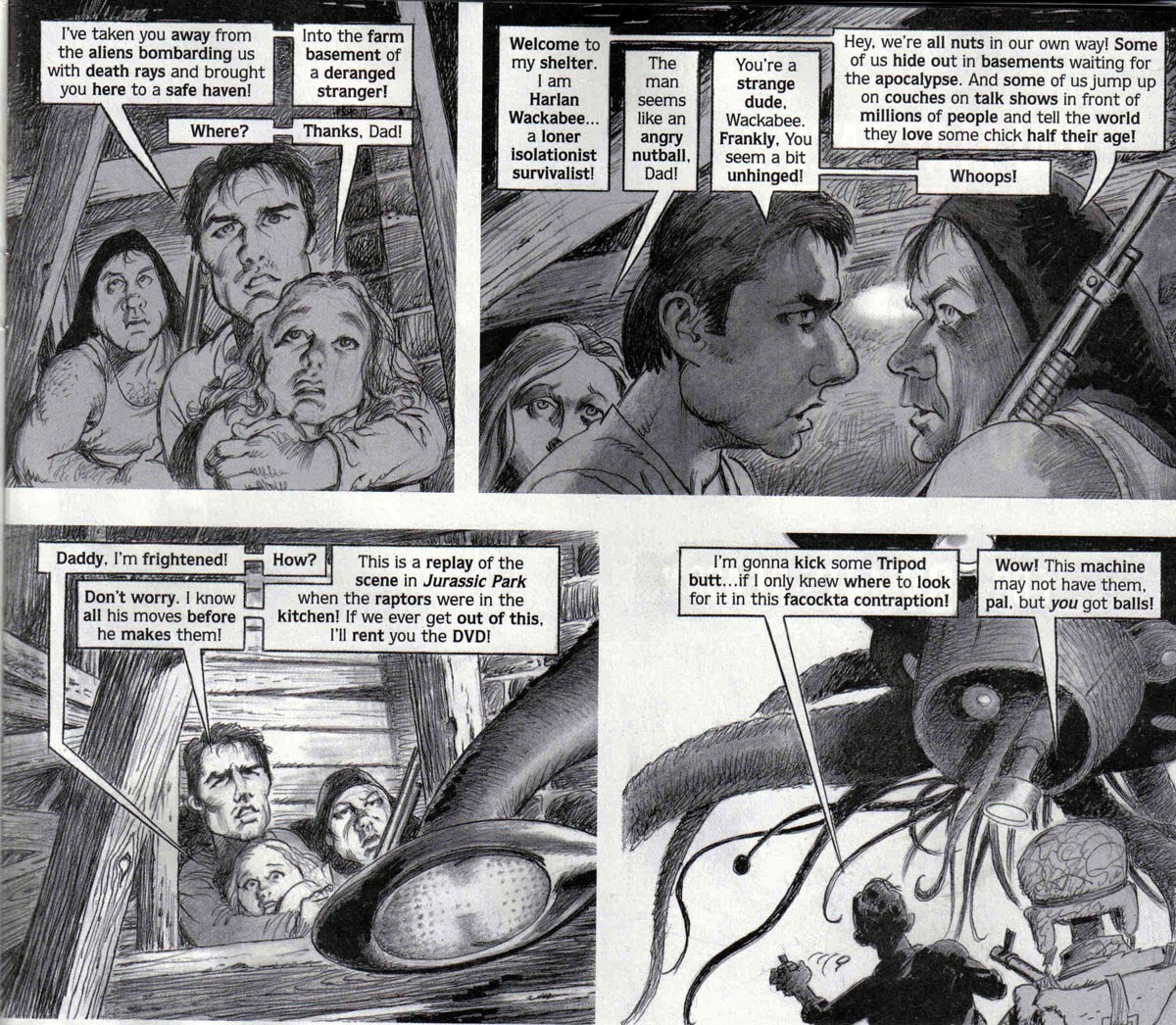 'Bore of the Worlds', a spoof of Steven Spielberg's 'War of the Worlds'. written by Arnie Kogen (Mad #458, October 2005). We recognize Tom Cruise and Tim Robbins.