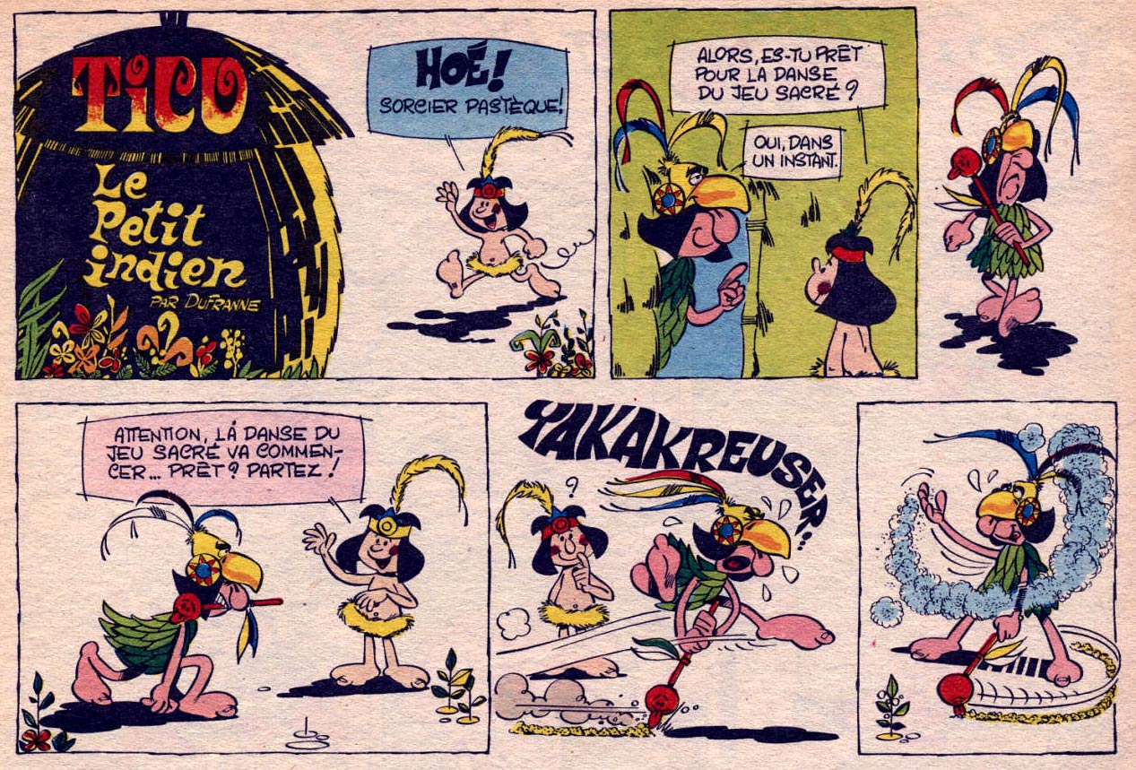Dufranne's second notable comic series in Pif Gadget during the 1960s and 1970s was 'Tico', about a little Native American. He also inked many pages of 'Pifou' for Roger Mas.