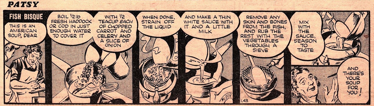 The cooking comic was made with a specific purpose. Due to the Second World War, many English girls had not received proper education, especially regarding cooking. 'Patsy' reached this demographic to help them catch up. Many recipes were also unusual to British readers, because the post-war economic boom saw an instream of numerous previously unavailable food products. Some were even considered quite exotic. Certain 'Patsy' episodes were also compiled in book format. The series ran until 1951.