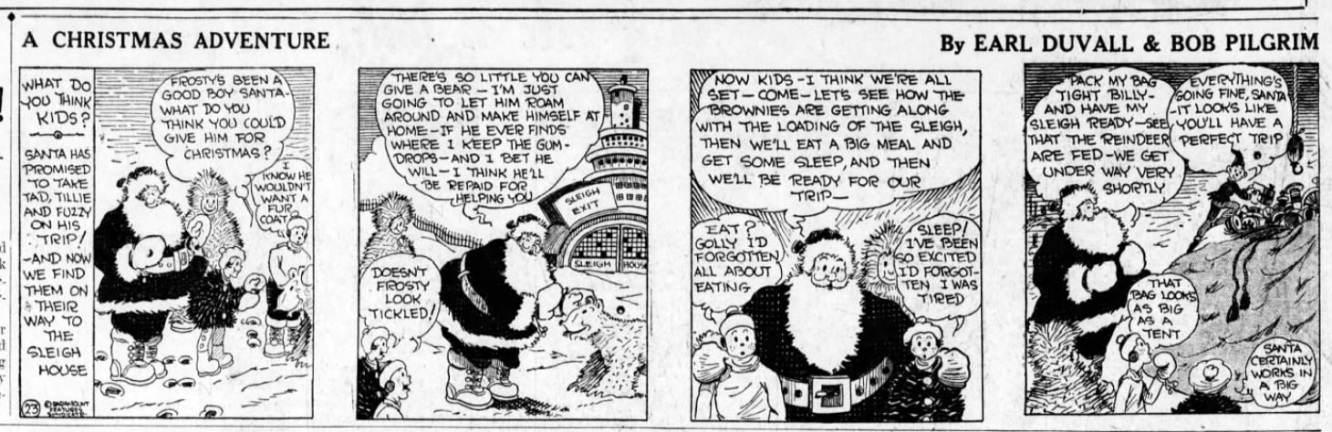 'A Christmas Adventure' by Earl Duvall and Bob Pilgrim in the Akron Beacon Journal. 20 December 1929.