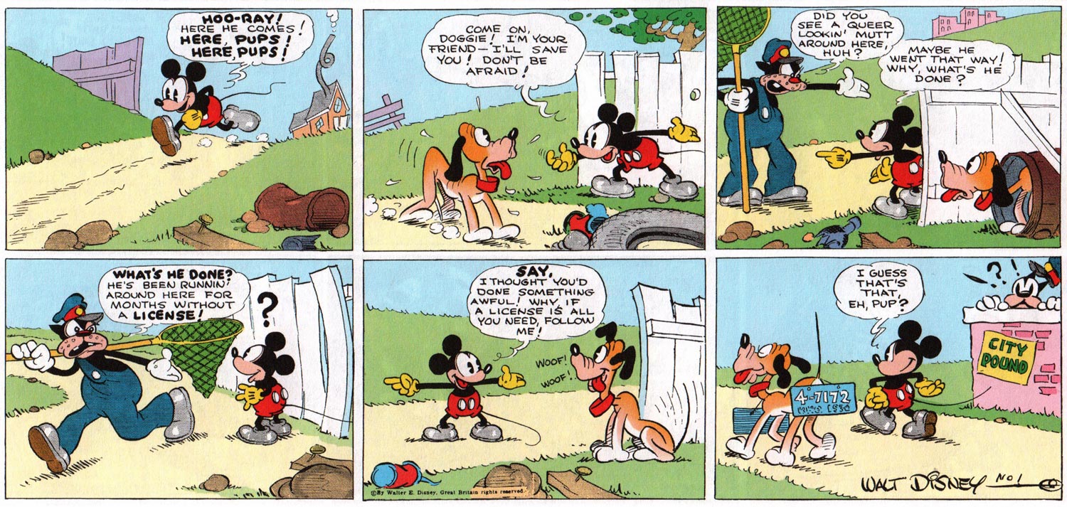 First 'Mickey Mouse' Sunday comic, penciled by Earl Duvall. 10 January 1932. - © Disney.