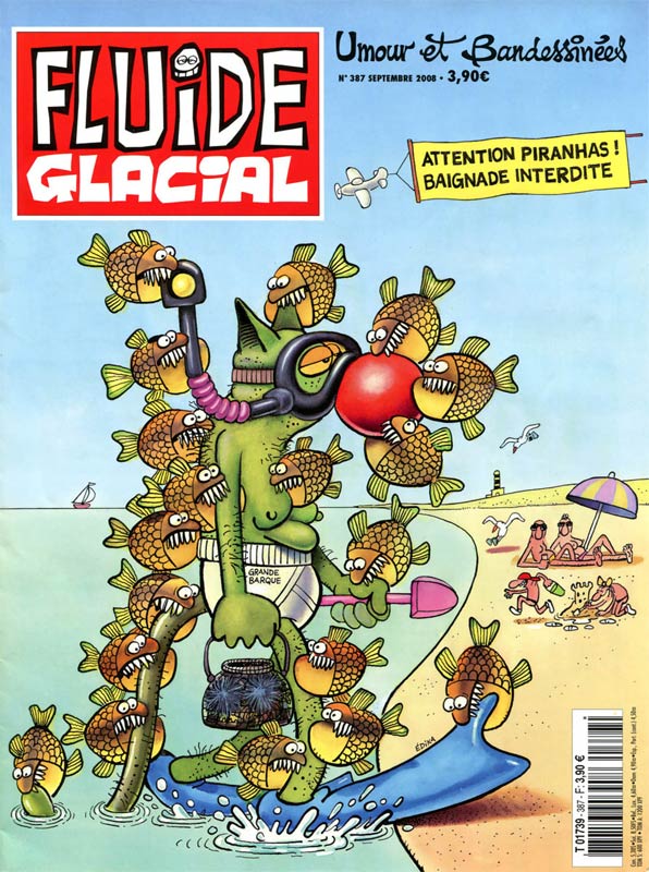 Diving and beaches are a frequently explored subjects in Édika's covers for Fluide Glacial.
