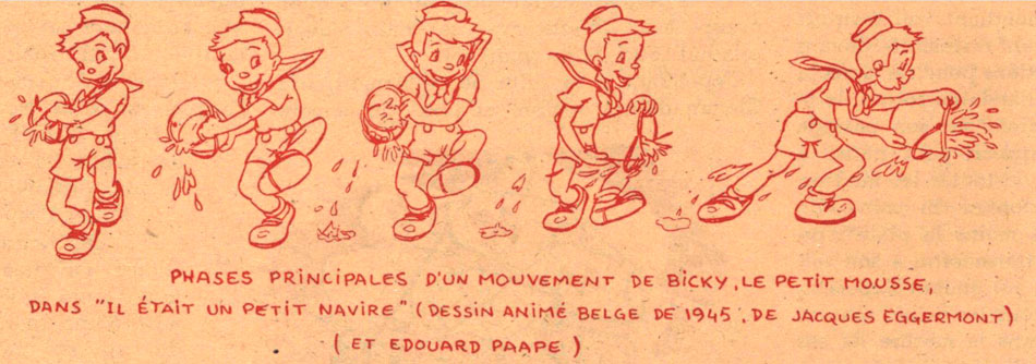 The character of the little sailor Bicky was created by Jacques Eggermont and Eddy Paape for an illustrated story on "how to make an animated cartoon" in Feu Sacré magazine (1947).