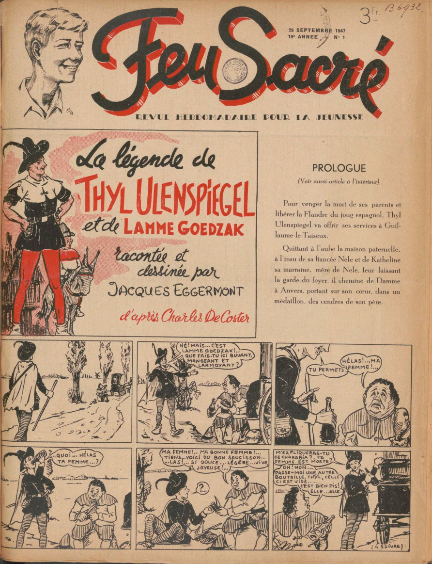 Also on 28 September 1947, this time made under his own name, Jacques Eggermont's comic serial based on the Charles De Coster novel about the folkloric character 'Tijl Uilenspiegel' also started in Feu Sacré. Serialization concluded on 15 February 1948.