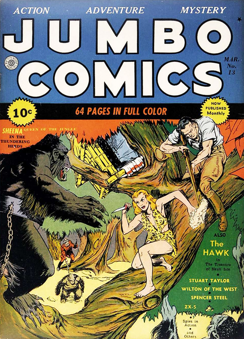 Cover illustrations by Will Eisner for Jumbo Comics #13 and #15 starring Sheena.