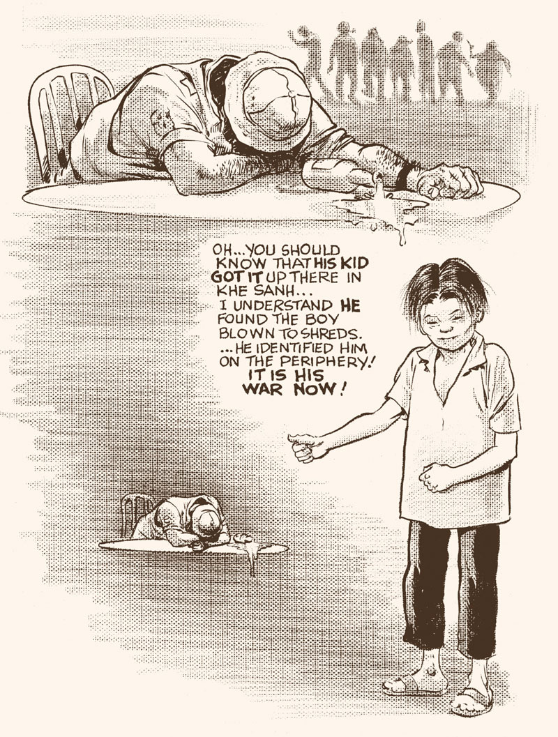 'A Family Matter' (Kitchen Sink Press, 1998) revolves around a family meeting where the patriarch's 90th birthday is celebrated. However, as the members reminisce about the past, many long-repressed traumas and frustrations slowly bubble to the surface. What starts out as a joyous occasion becomes a bitter conflict. 'Minor Miracles' (DC, 2000) brought Eisner back to Dropsie Avenue, the location of 'Contract with God'. The graphic novel delves into stories about incredible luck, misfortune or coincidence which pushed character's lives into remarkable directions. As unbelievable these stories may seem - and they often are - the narrators themselves want to believe them, for better or for worse. With 'Last Day in Vietnam' (Dark Horse, 2000), Eisner delved into his war past. The book contains six short stories reflecting soldier's lives during World War II, the Korean and Vietnam War. Eisner's own military service was an eye-opening experience to him, and he always wanted to do something with his memories. 'Last Day in Vietnam' shows that young recruits not only face daily military hostilities but also larger, psychological issues. The work won the 2001 Harvey Award for "Best Graphic Album or Original Work". 'The Name of the Game' (DC, 2001), a saga spanning over several generations, was loosely inspired by Will Eisner's mother's side of the family. It deals with the family's enterprises as well as their inner conflicts.