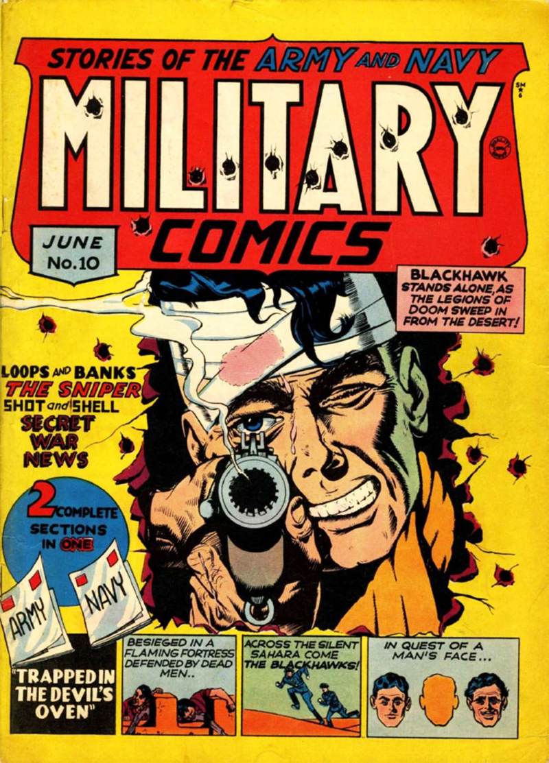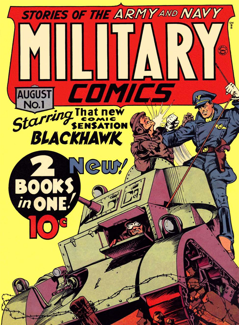 Covers for Military Comics #1 and #10, (August 1941 and June 1942) by Will Eisner.