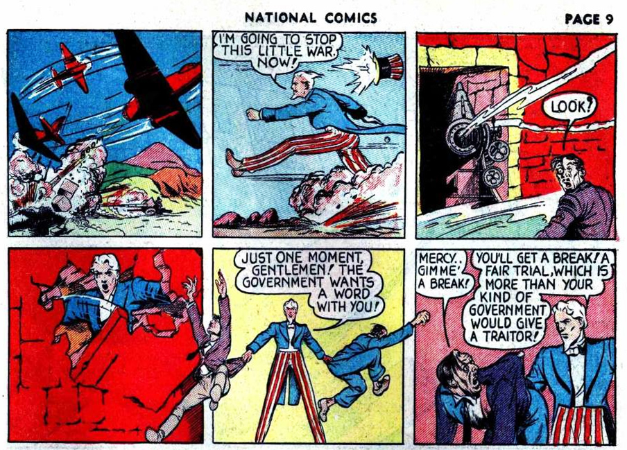 'Uncle Sam', from National Comics #1 (July 1940), lay-outs by Eisner, finished art by Dave Berg.